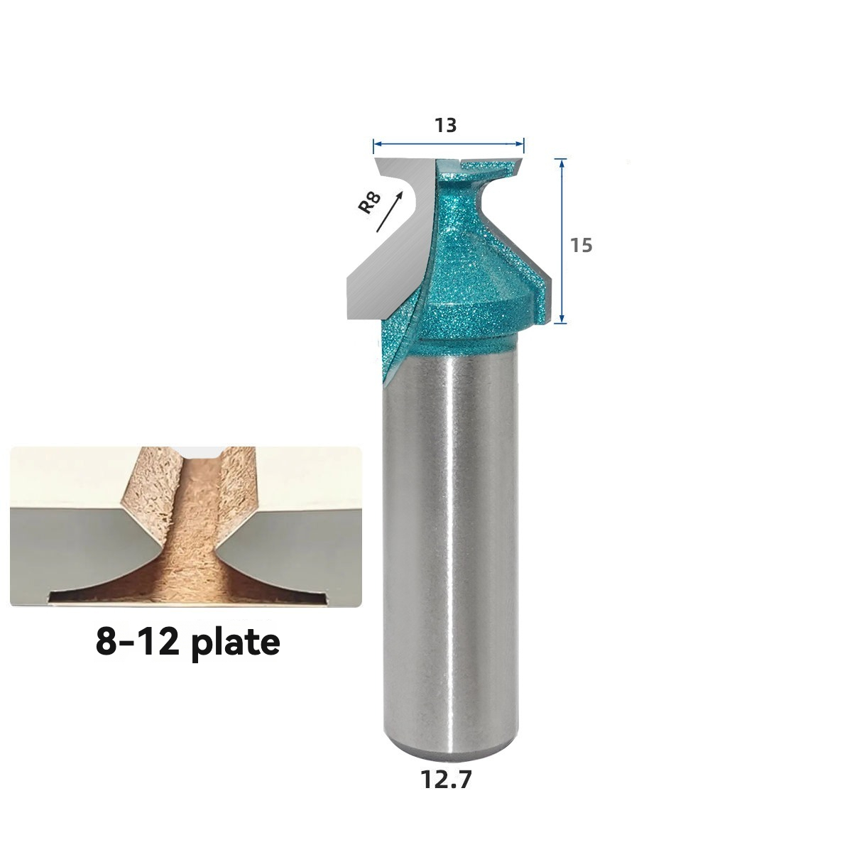 This 12.7mm (1/2 inch) shank bit features an R8 arc for precise folding operations. Ideal for 8–12mm carbon crystal board or thin panel arc processing.