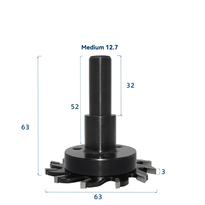 Complete router slotting set including 12.7mm shank arbor and 63mm diameter blade with 3mm kerf. Ideal for cabinet making and woodworking groove applications requiring clean and accurate cuts.